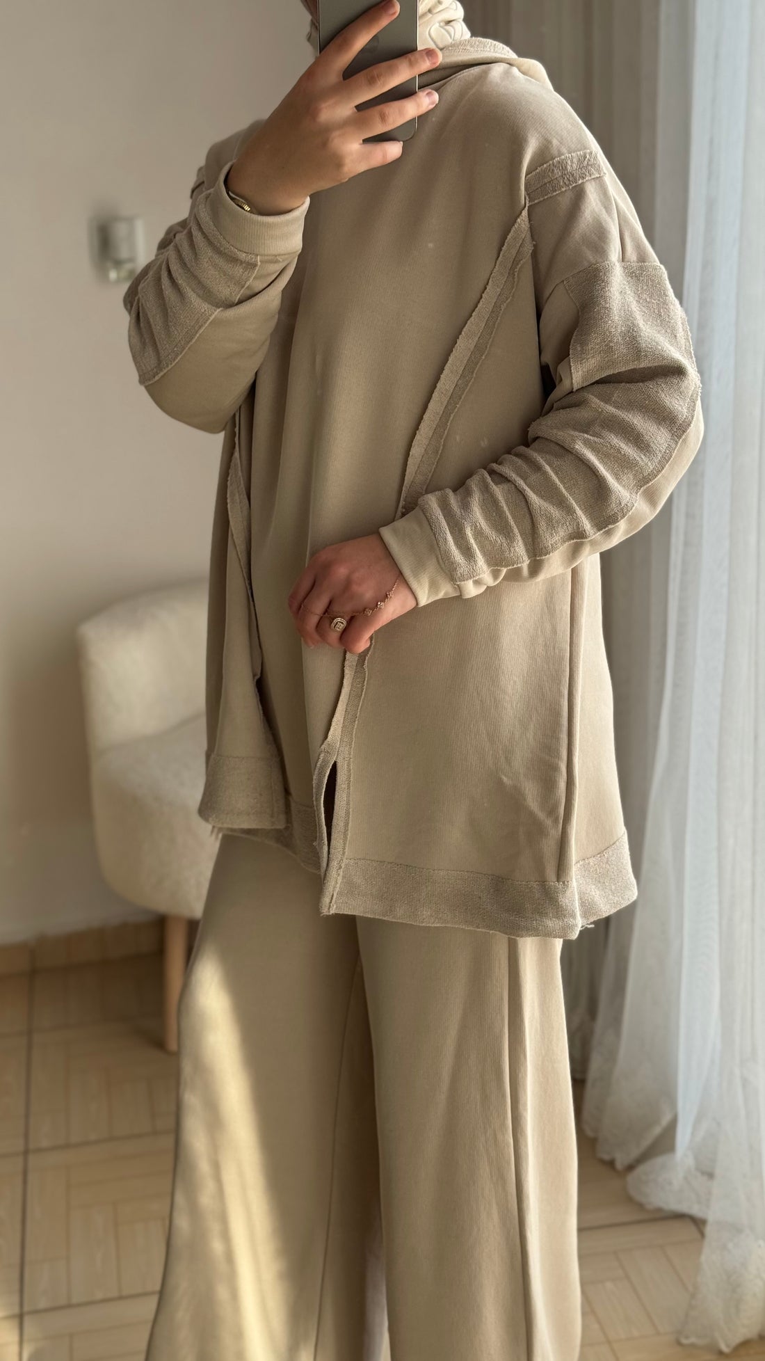 Scuba ikili kumaş bej