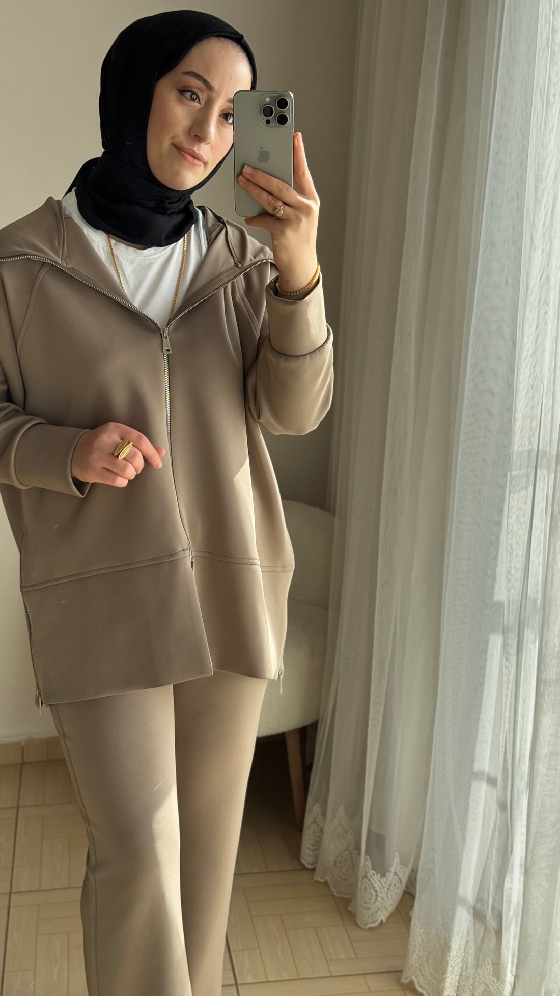 Simli etekli takım kahverengi