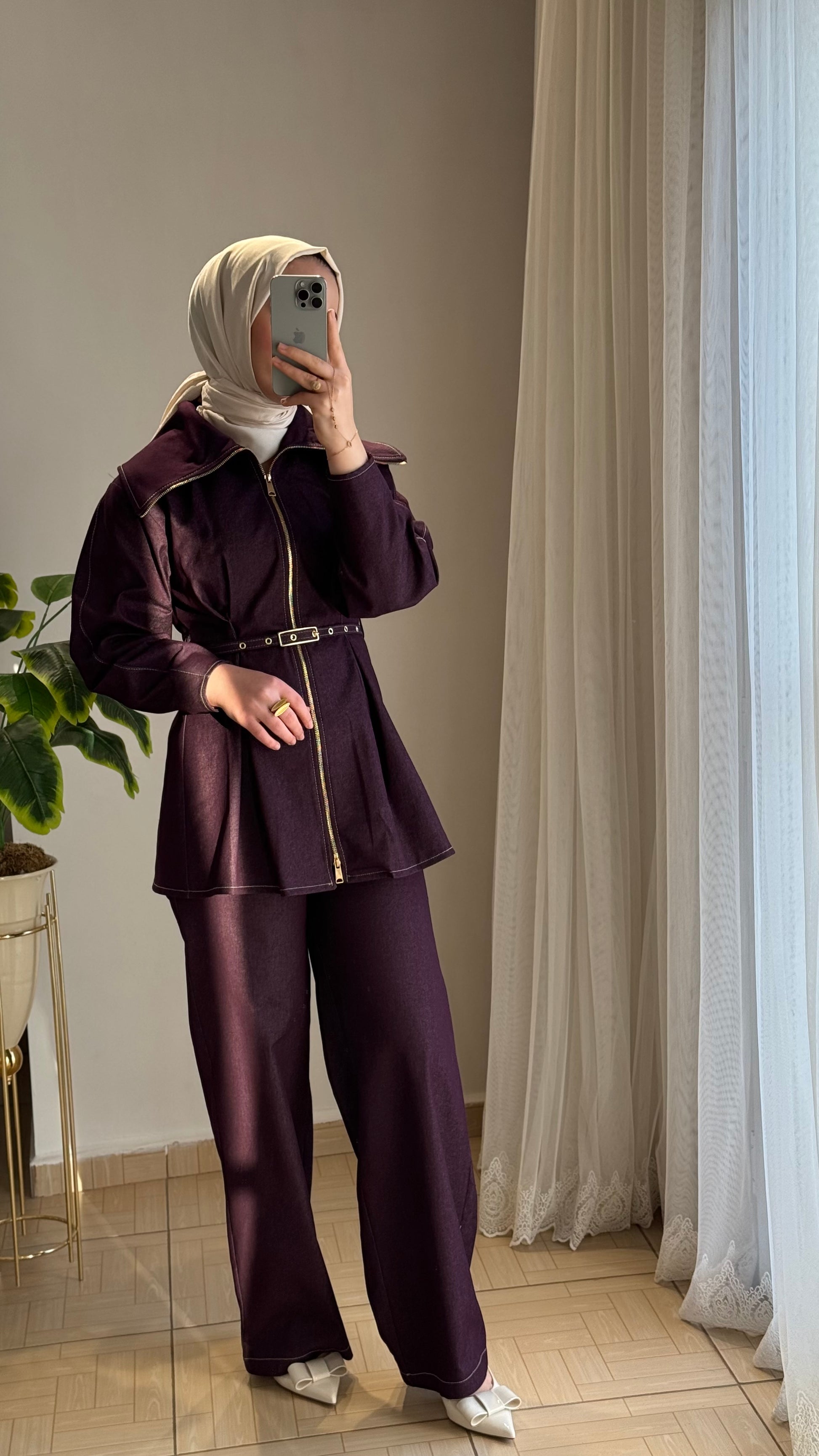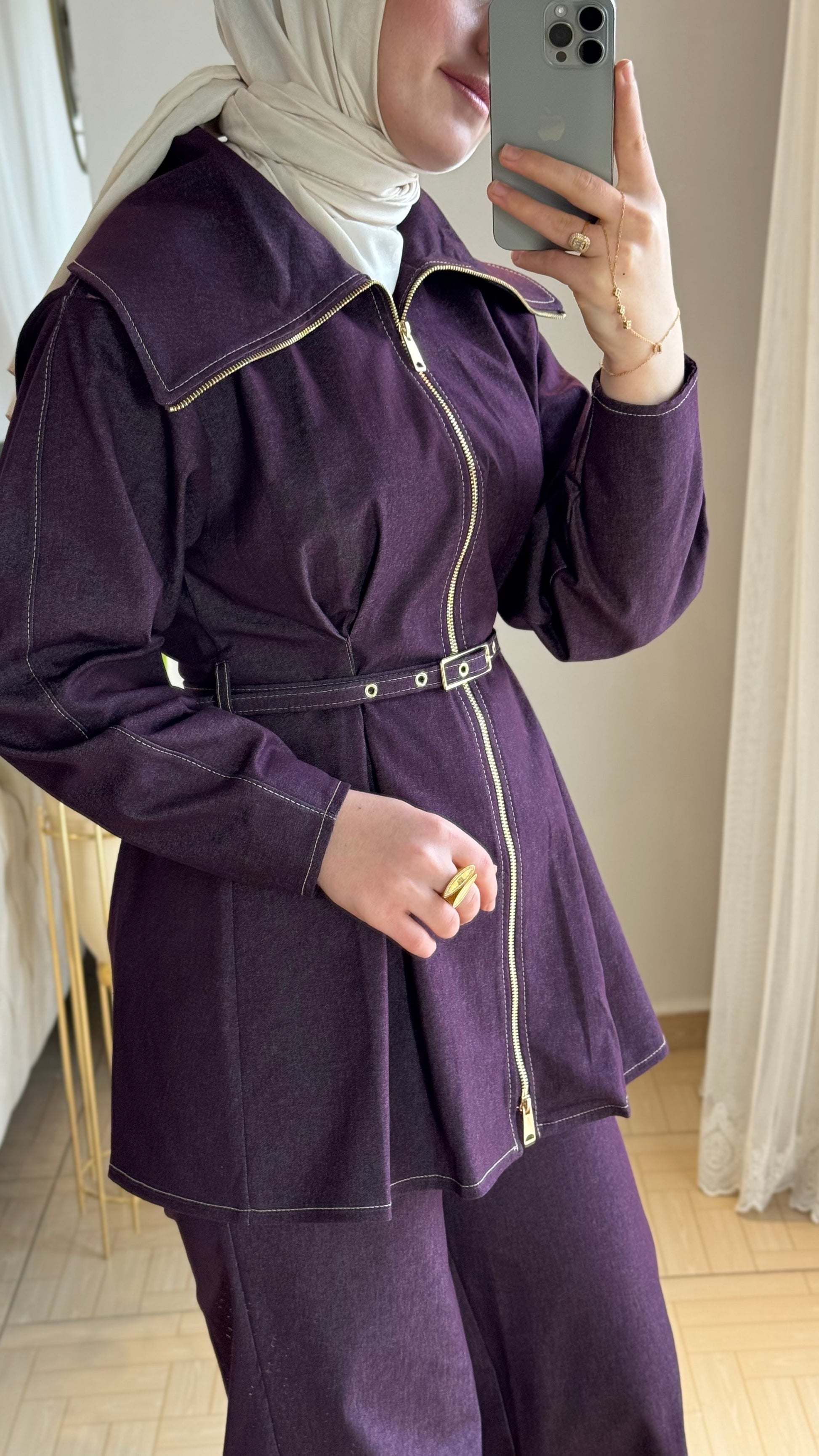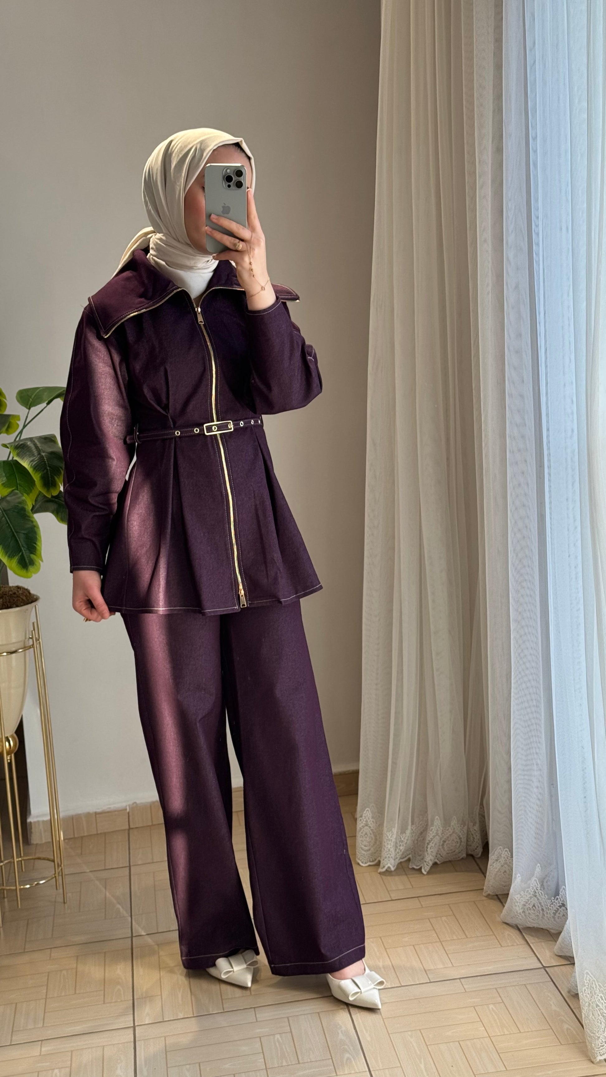 Denim ikili takım mürdüm