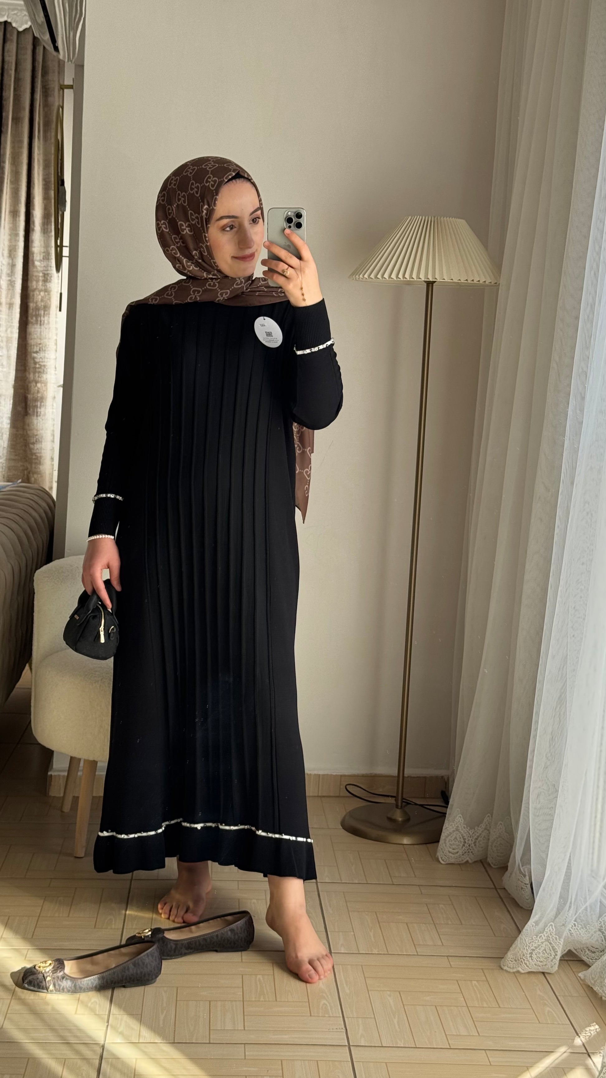 Merserize siyah taşlı elbise