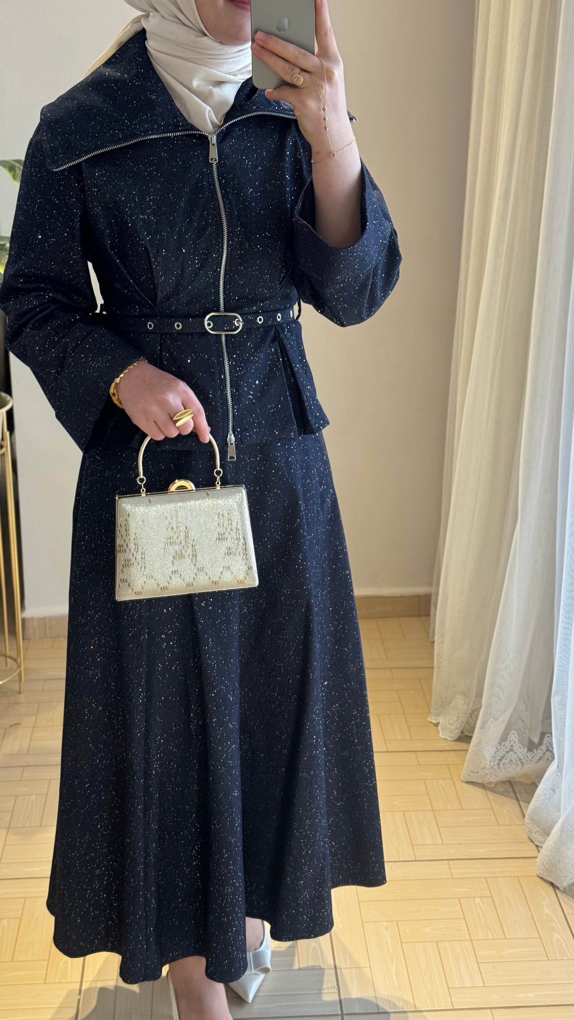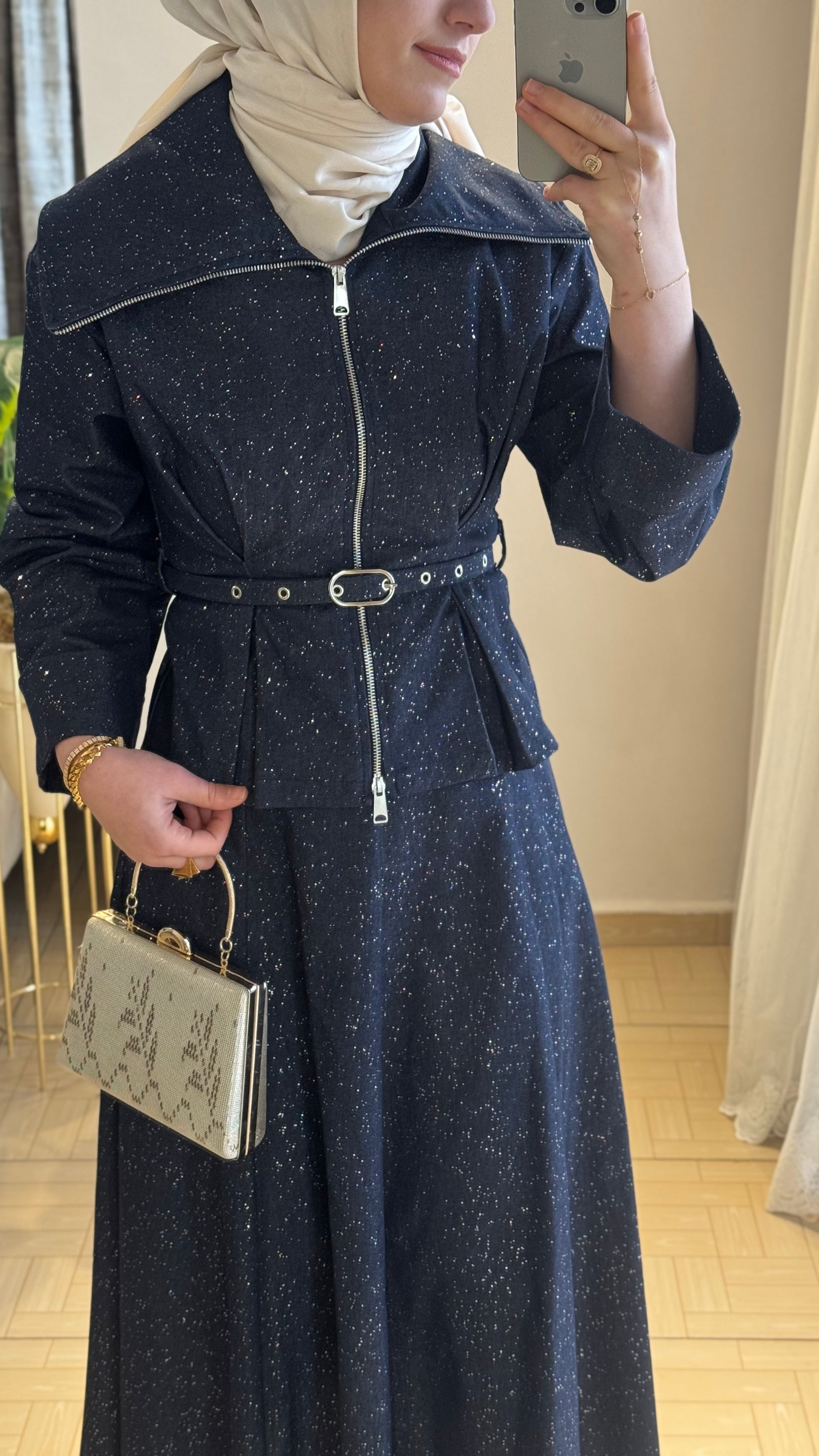 🔹 Kumaş: Simli kot kumaş